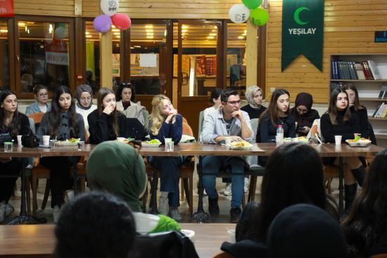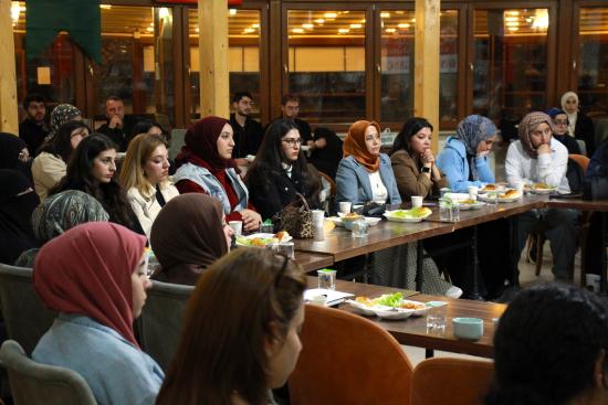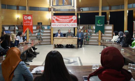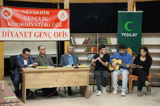 Fakültemiz Dekanı Prof. Dr. H. Abdullah Şengül, Camlı Köşk Diyanet Genç Ofis’te düzenlenen etkinlikte öğrencilerle “Edebiyatın Varlık Sebebi” üzerine samimi bir sohbet gerçekleştirdi. Öğrencilerin yoğun ilgi gösterdiği buluşmaya, Dekan Yardımcısı Doç. Dr. Murat Gür de katıldı. Program, sohbetin ardından keyifli bir müzik dinletisiyle sona erdi.