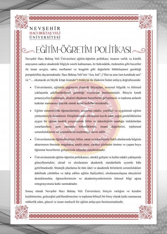 Eğitim Öğretim Politikası Politikalar Kalite Politikamız Yönetim Politikası Eğitim Öğretim Politikası AR-GE Politikası Toplumsal Katkı Politikası Uluslararasılaşma Politikası