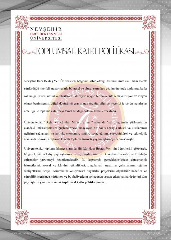 Toplumsal Katkı Politikası Politikalar Kalite Politikamız Yönetim Politikası Eğitim Öğretim Politikası AR-GE Politikası Toplumsal Katkı Politikası Uluslararasılaşma Politikası