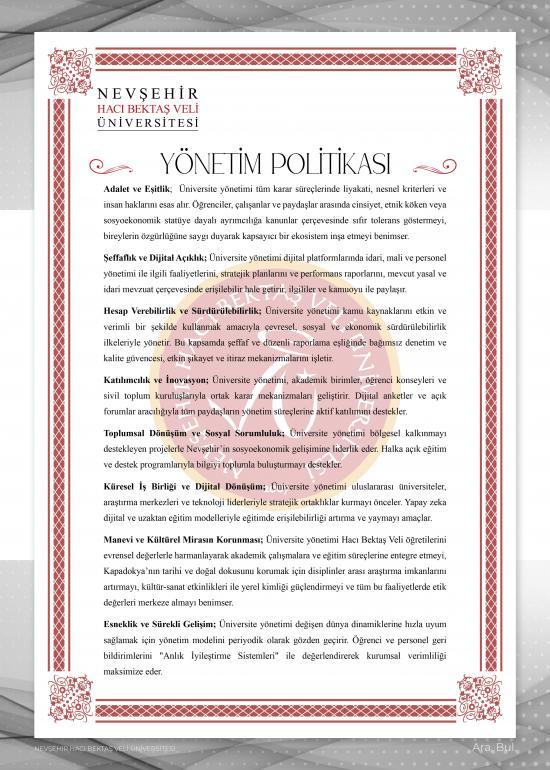 Yönetim Politikası Politikalar Kalite Politikamız Yönetim Politikası Eğitim Öğretim Politikası AR-GE Politikası Toplumsal Katkı Politikası Uluslararasılaşma Politikası